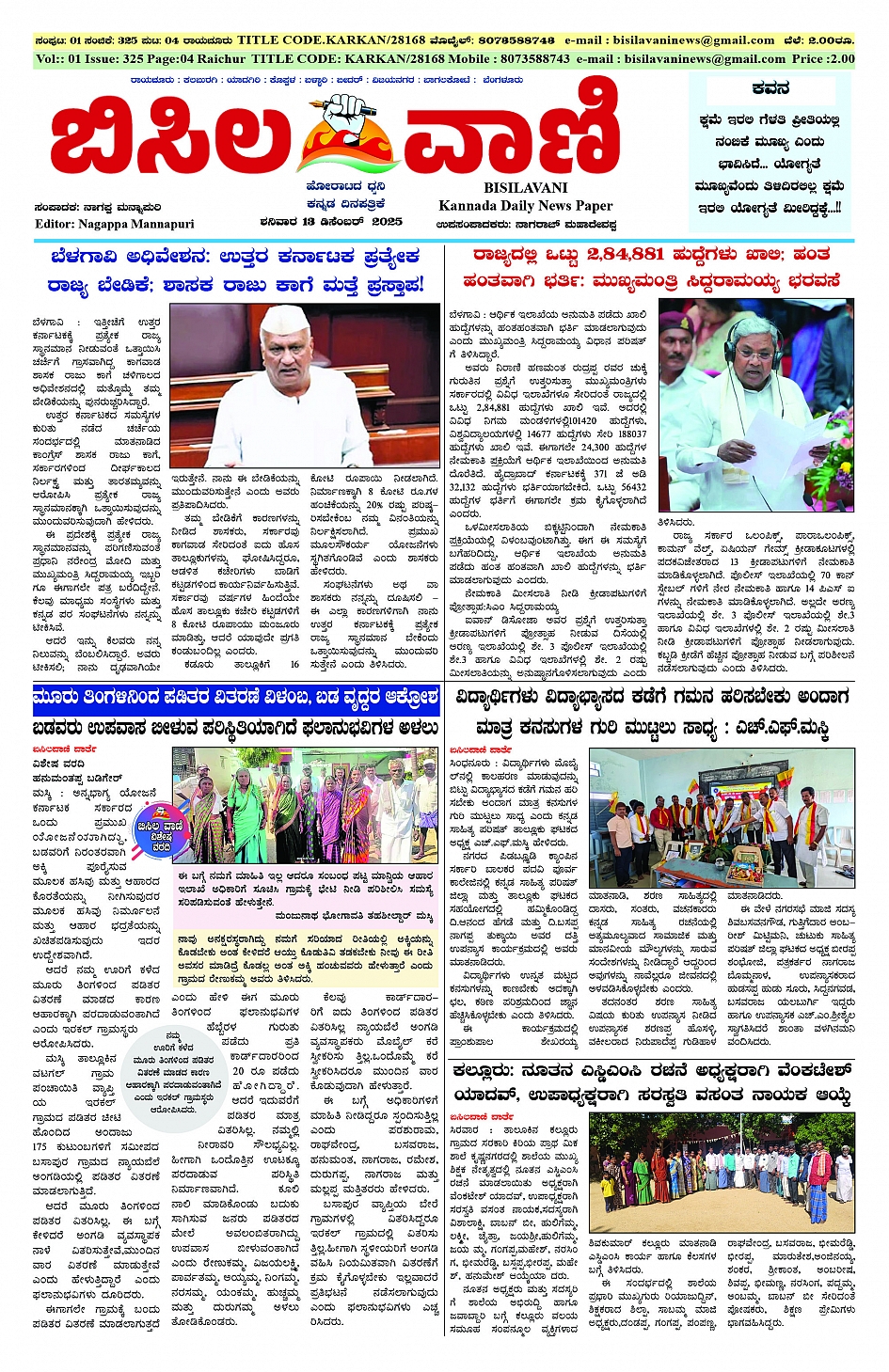 13 Decemberr 2025 ಬಿಸಿಲವಾಣಿ