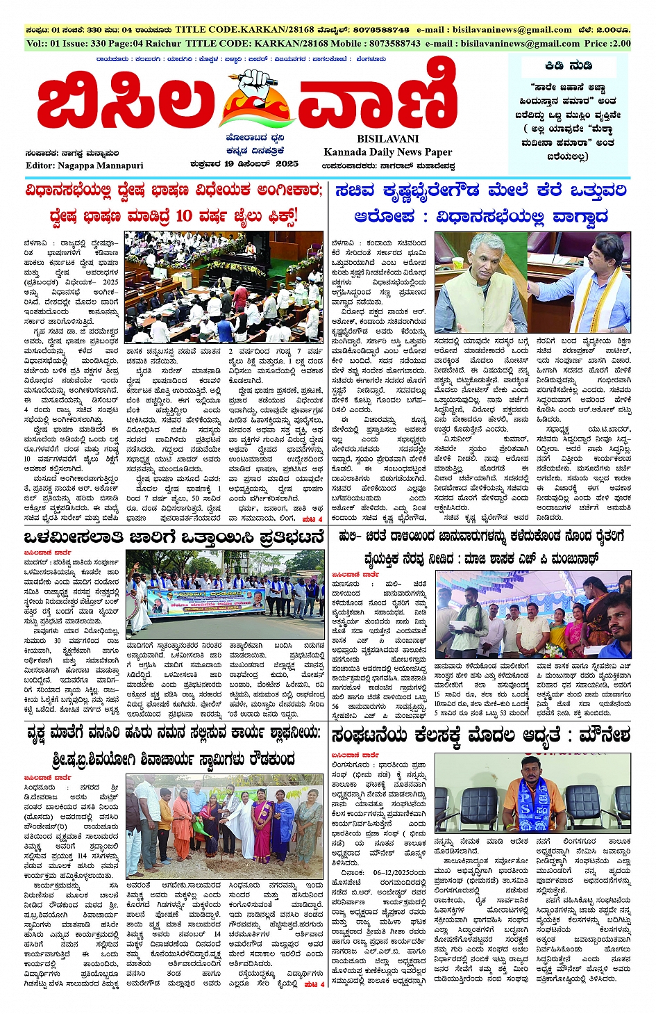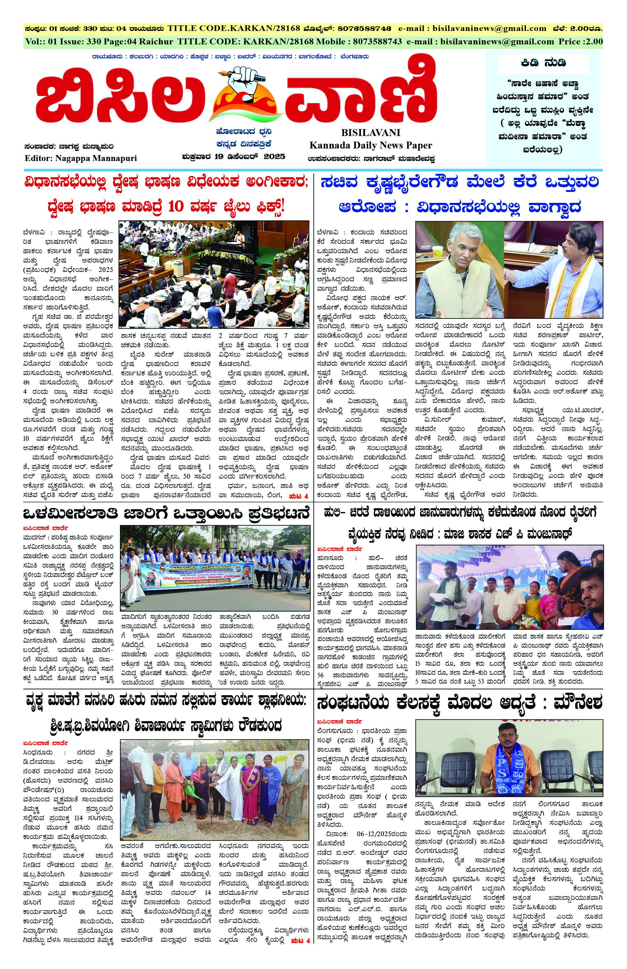 19 Decemberr 2025 ಬಿಸಿಲವಾಣಿ
