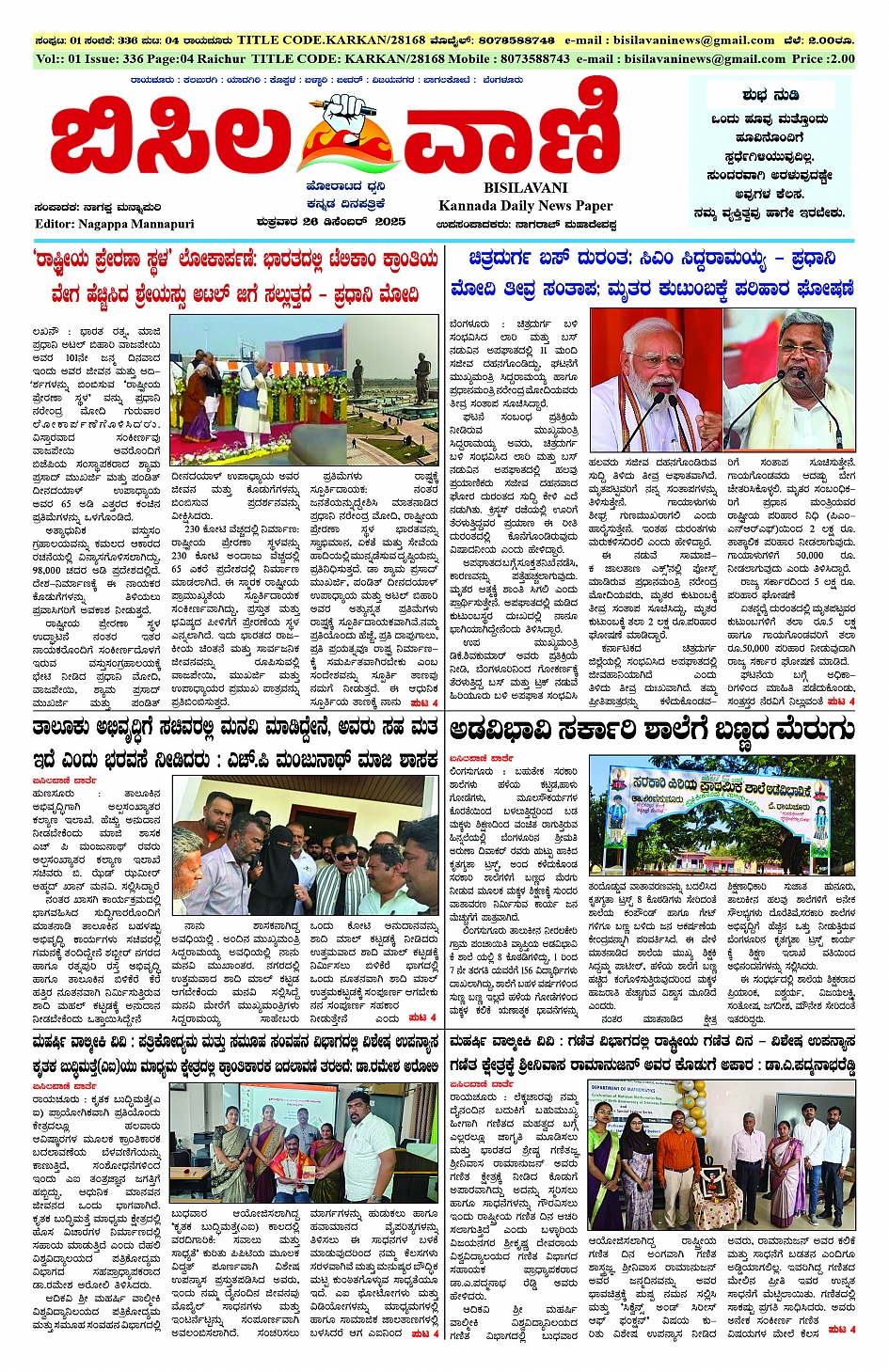 26 Decemberr 2025 ಬಿಸಿಲವಾಣಿ December 26, 2025 << First << 1 >> Last >> Page 1Page 2Page 3Page 4 × 26 Decemberr 2025 ಬಿಸಿಲವಾಣಿ BISILAVANI 26-12-2025BISILAVANI 26-12-20252BISILAVANI 26-12-20253BISILAVANI 26-12-20254 << First << 1 >> Last >> BISILAVANI 26-12-2025BISILAVANI 26-12-20252BISILAVANI 26-12-20253BISILAVANI 26-12-20254 BISILAVANI 26-12-2025