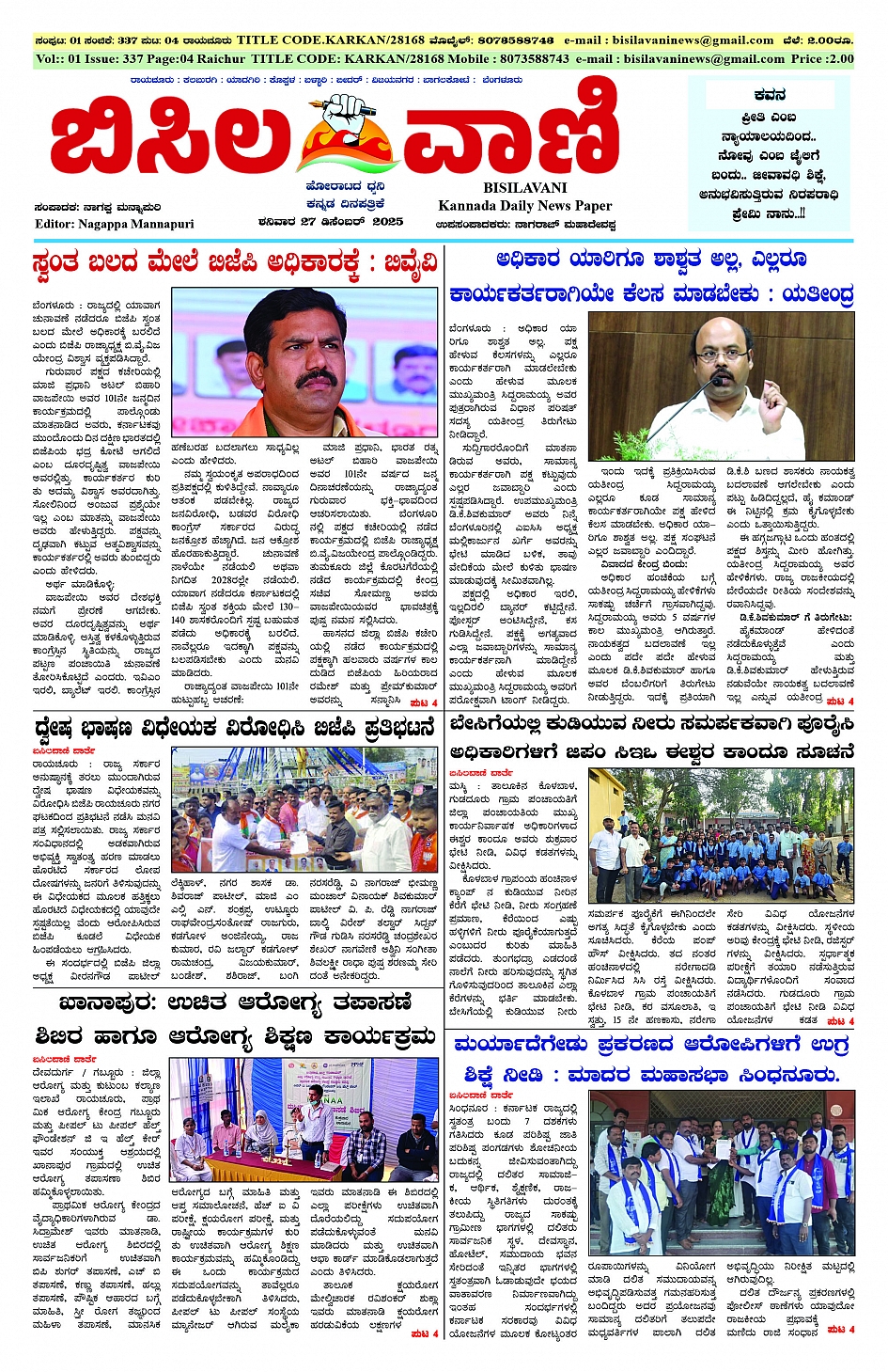 27 Decemberr 2025 ಬಿಸಿಲವಾಣಿ December 27, 2025 << First << 1 >> Last >> Page 1Page 2Page 3Page 4 × 27 Decemberr 2025 ಬಿಸಿಲವಾಣಿ BISILAVANI 27-12-2025BISILAVANI 27-12-20252BISILAVANI 27-12-20253BISILAVANI 27-12-20254 << First << 1 >> Last >> BISILAVANI 27-12-2025BISILAVANI 27-12-20252BISILAVANI 27-12-20253BISILAVANI 27-12-20254 BISILAVANI 27-12-2025