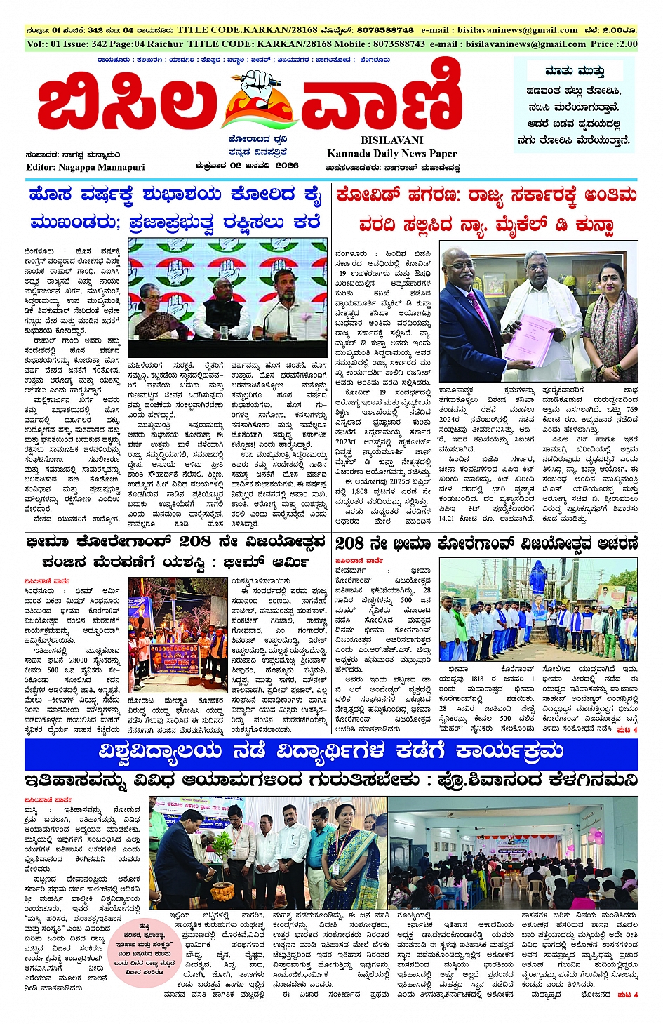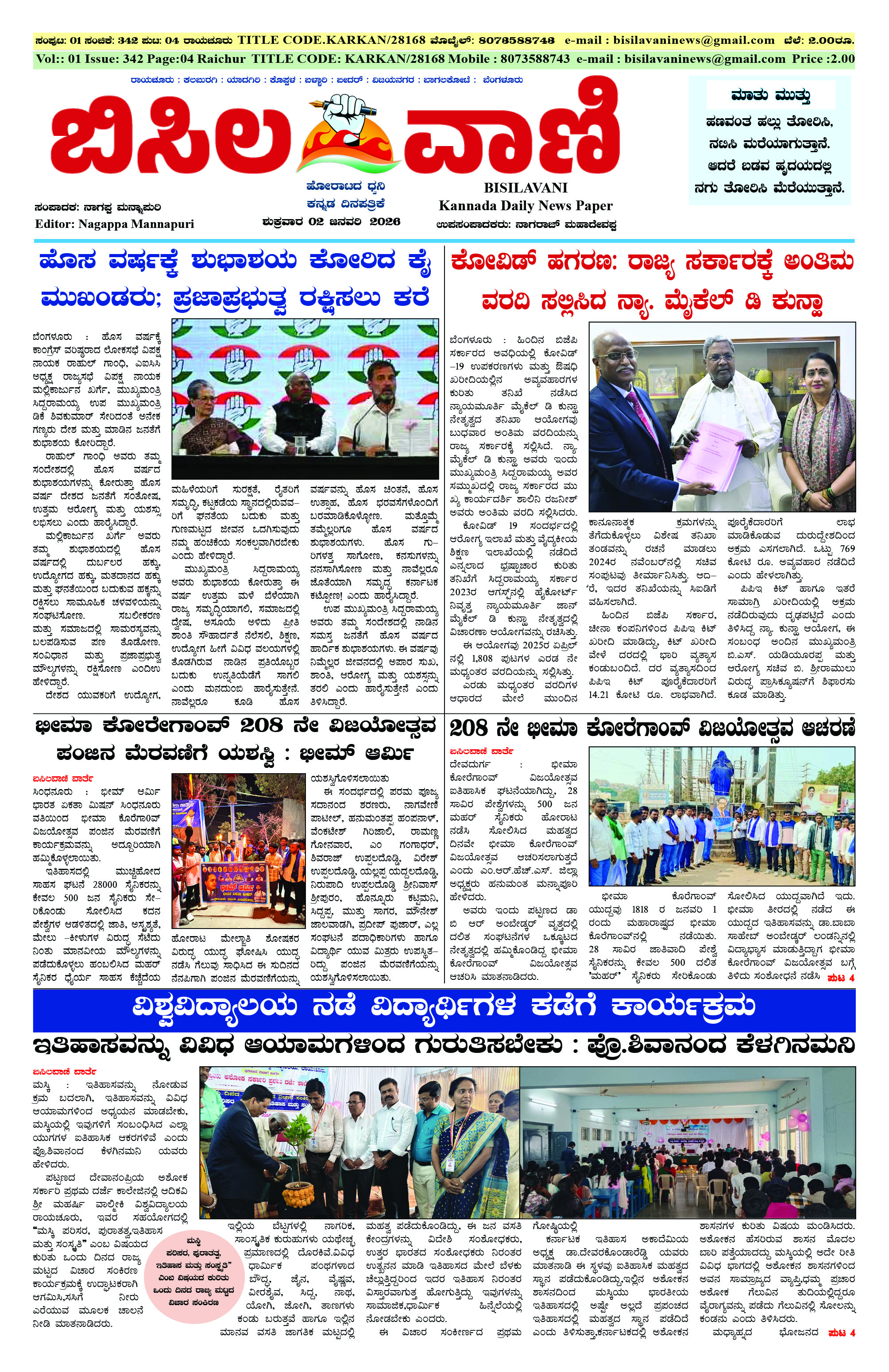 02 JANUARY 2026 ಬಿಸಿಲವಾಣಿ January 02, 2026 << First << 1 >> Last >> Page 1Page 2Page 3Page 4 × 02 JANUARY 2026 ಬಿಸಿಲವಾಣಿ BISILAVANI 02-01-2026BISILAVANI 02-01-20262BISILAVANI 02-01-20263BISILAVANI 02-01-20264 << First << 1 >> Last >> BISILAVANI 02-01-2026BISILAVANI 02-01-20262BISILAVANI 02-01-20263BISILAVANI 02-01-20264 BISILAVANI 02-01-2026