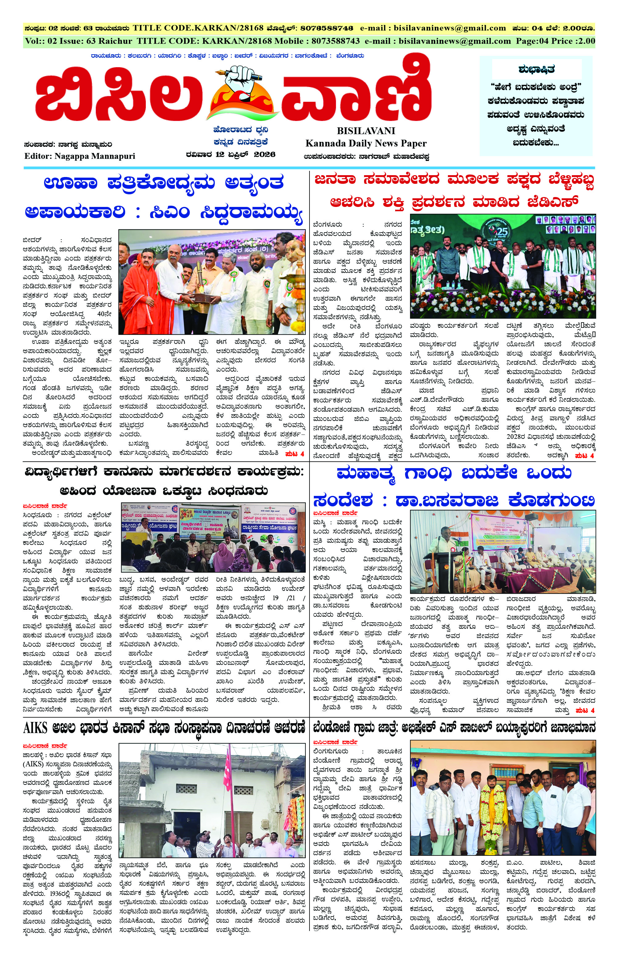 12 April 2026 ಬಿಸಿಲವಾಣಿ April 12, 2026 << First << 1 >> Last >> Page 1Page 2Page 3Page 4 × 12 April 2026 ಬಿಸಿಲವಾಣಿ BISILAVANI 12-04-2026BISILAVANI 12-04-20262BISILAVANI 12-04-20263BISILAVANI 12-04-20264 << First << 1 >> Last >> BISILAVANI 12-04-2026BISILAVANI 12-04-20262BISILAVANI 12-04-20263BISILAVANI 12-04-20264 BISILAVANI 12-04-2026