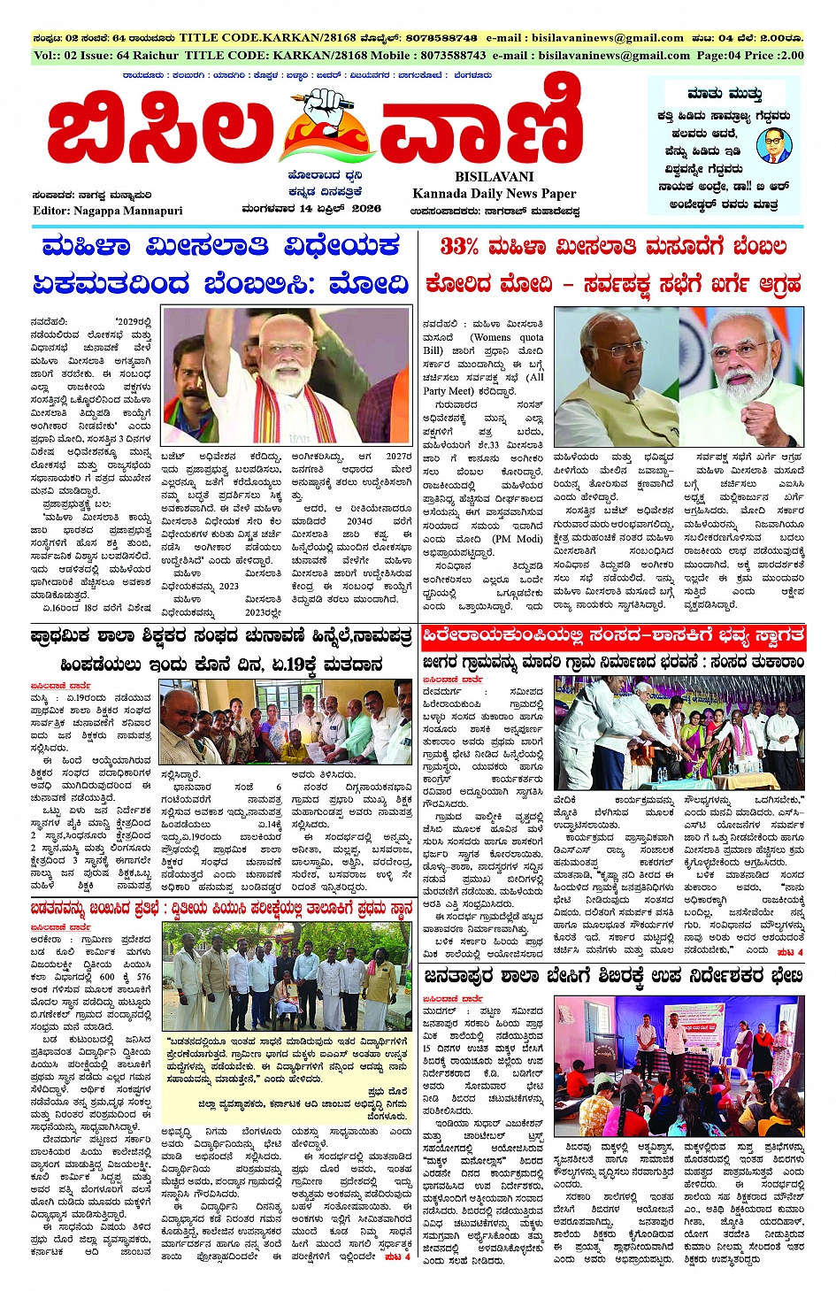 14 April 2026 ಬಿಸಿಲವಾಣಿ April 14, 2026 << First << 1 >> Last >> Page 1Page 2Page 3Page 4 × 14 April 2026 ಬಿಸಿಲವಾಣಿ BISILAVANI 14-04-2026BISILAVANI 14-04-20262BISILAVANI 14-04-20263BISILAVANI 14-04-20264 << First << 1 >> Last >> BISILAVANI 14-04-2026BISILAVANI 14-04-20262BISILAVANI 14-04-20263BISILAVANI 14-04-20264 BISILAVANI 14-04-2026