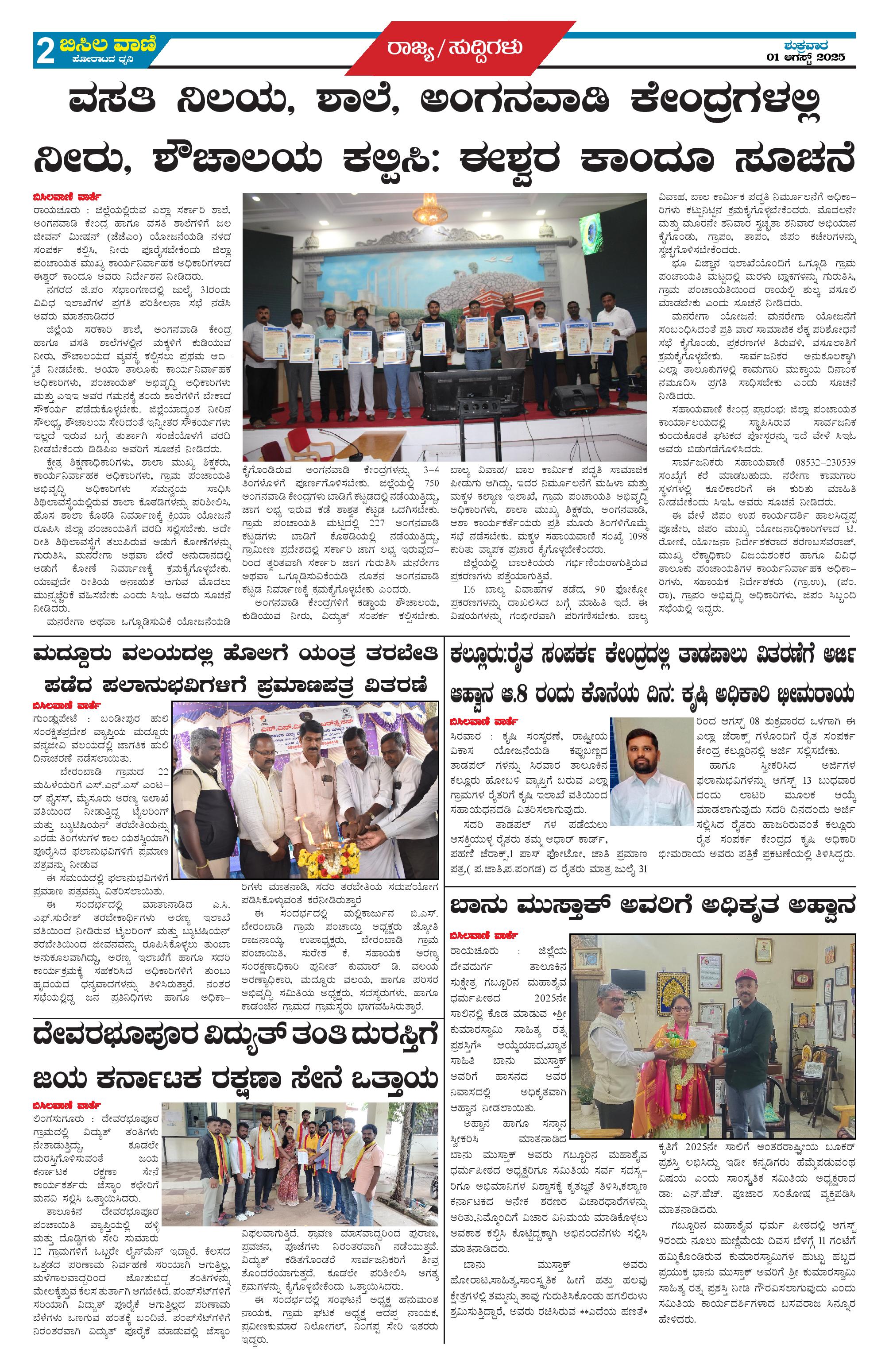01 AUGUST 2025 ಬಿಸಿಲವಾಣಿ Page: 2 August 01, 2025 << First << 2 >> Last >> Page 1Page 2Page 3Page 4 × 01 AUGUST 2025 ಬಿಸಿಲವಾಣಿ p1p2p3p4 << First << 2 >> Last >> p1p2p3p4 p2