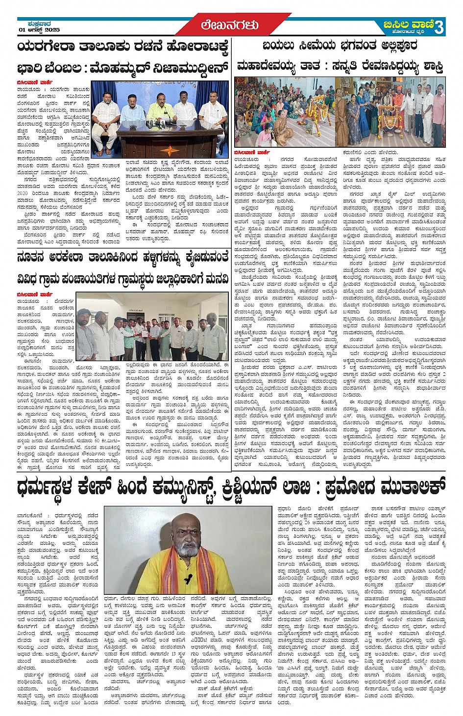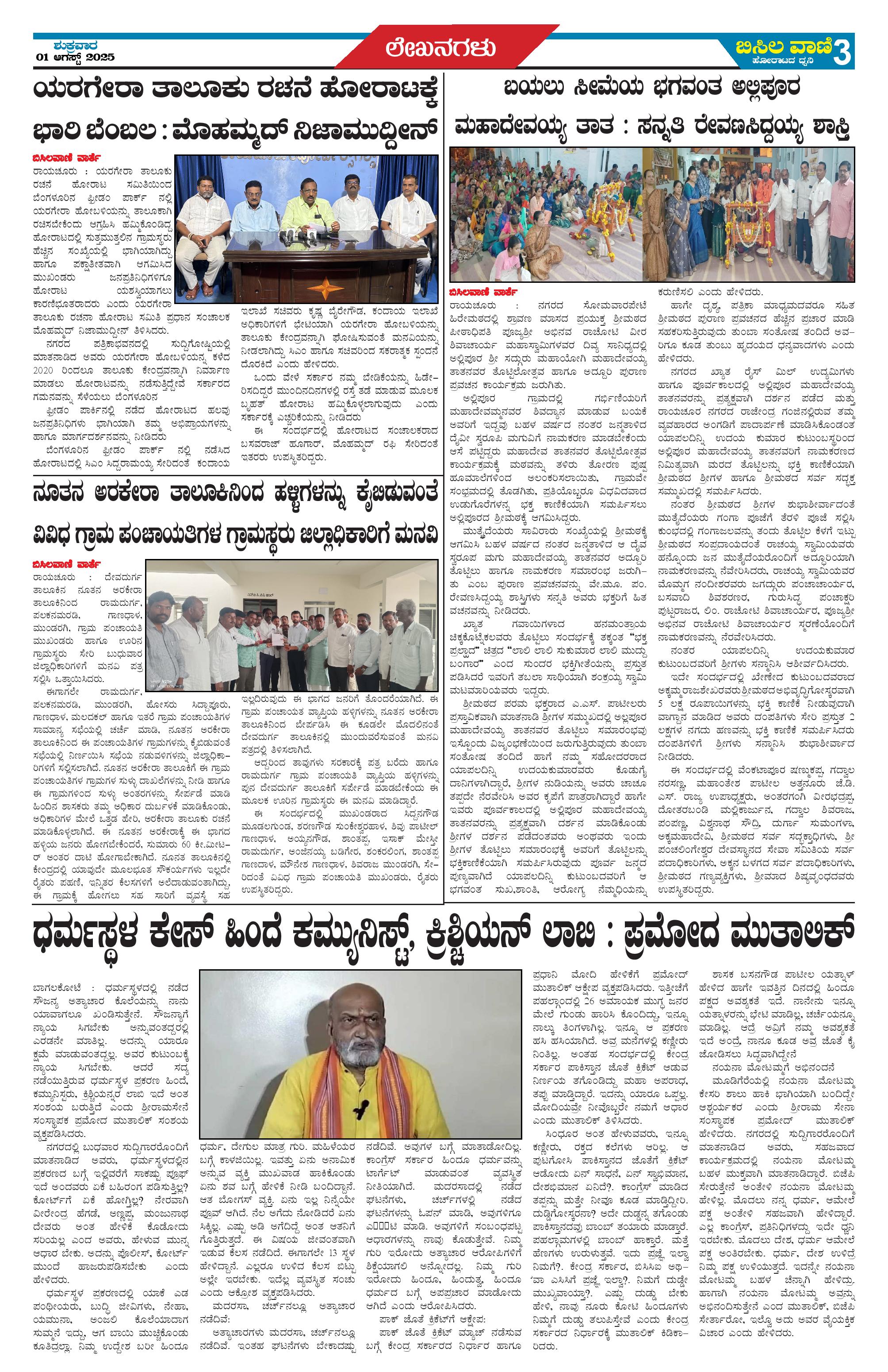 01 AUGUST 2025 ಬಿಸಿಲವಾಣಿ Page: 3 August 01, 2025 << First << 3 >> Last >> Page 1Page 2Page 3Page 4 × 01 AUGUST 2025 ಬಿಸಿಲವಾಣಿ p1p2p3p4 << First << 3 >> Last >> p1p2p3p4 p3