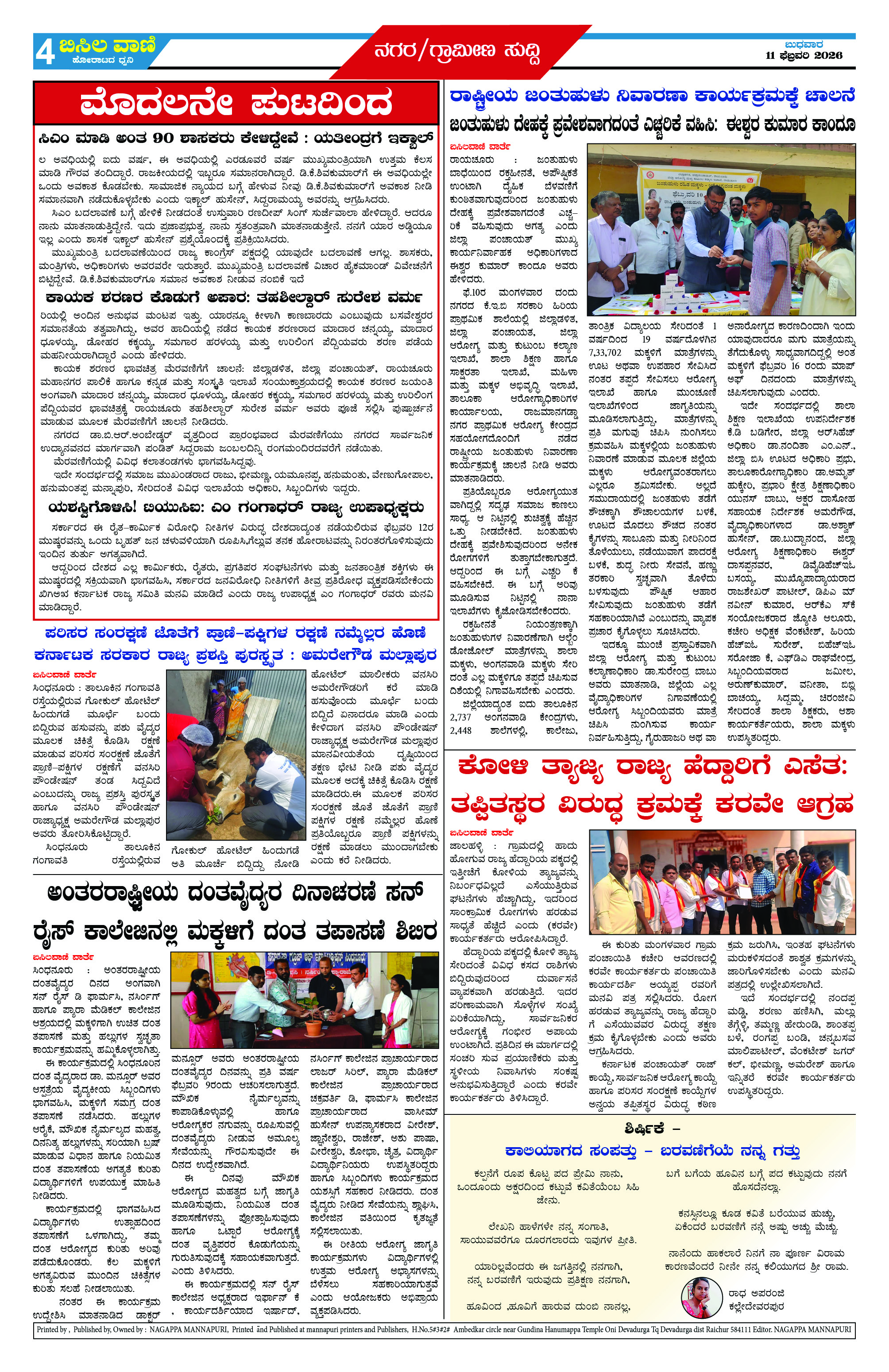 11 February 2026 ಬಿಸಿಲವಾಣಿ Page: 4 February 11, 2026 << First << 4 >> Last >> Page 1Page 2Page 3Page 4 × 11 February 2026 ಬಿಸಿಲವಾಣಿ BISILAVANI 11-02-2026BISILAVANI 11-02-20262BISILAVANI 11-02-20263BISILAVANI 11-02-20264 << First << 4 >> Last >> BISILAVANI 11-02-2026BISILAVANI 11-02-20262BISILAVANI 11-02-20263BISILAVANI 11-02-20264 BISILAVANI 11-02-20264
