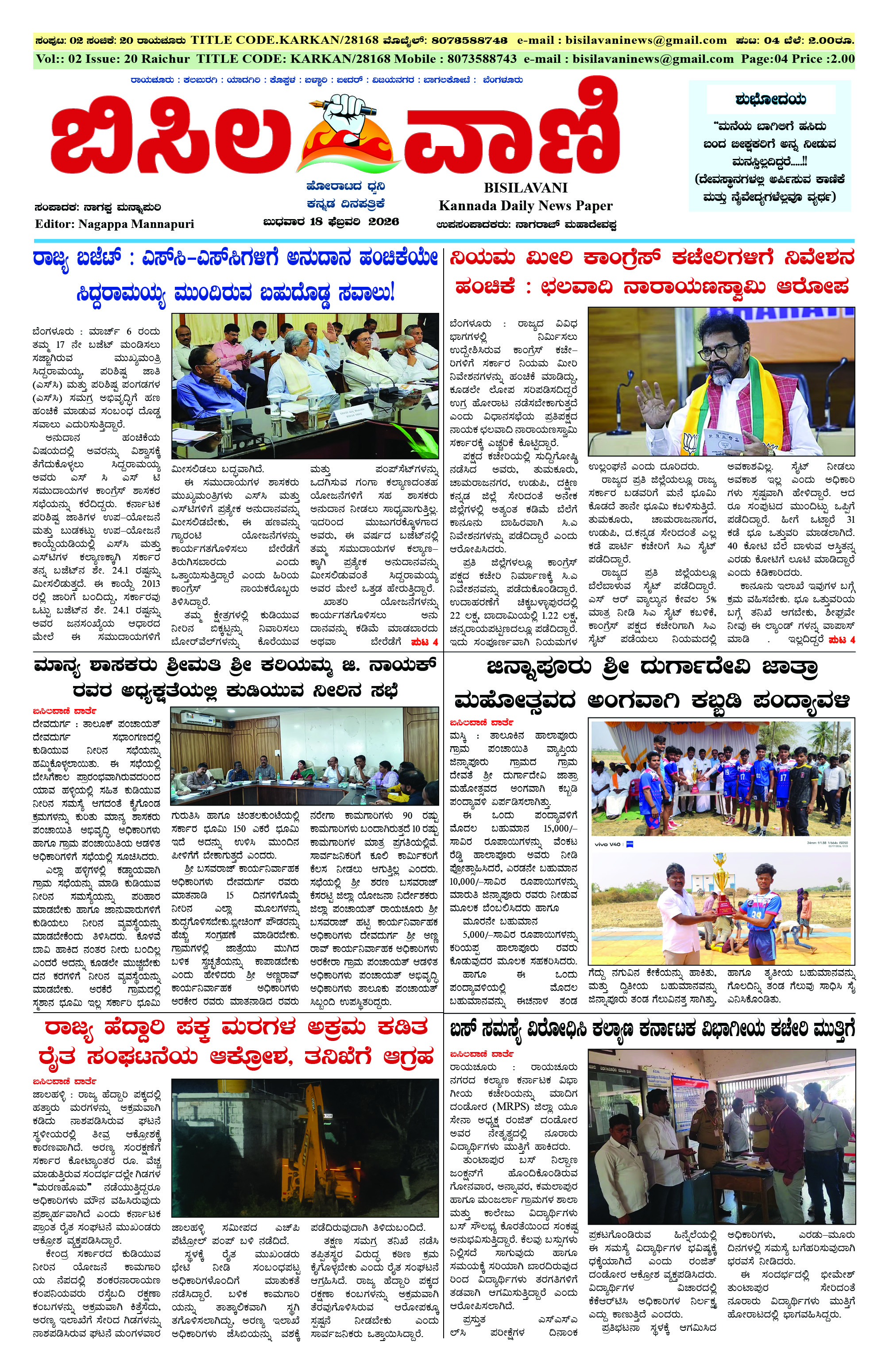 18 February 2026 ಬಿಸಿಲವಾಣಿ