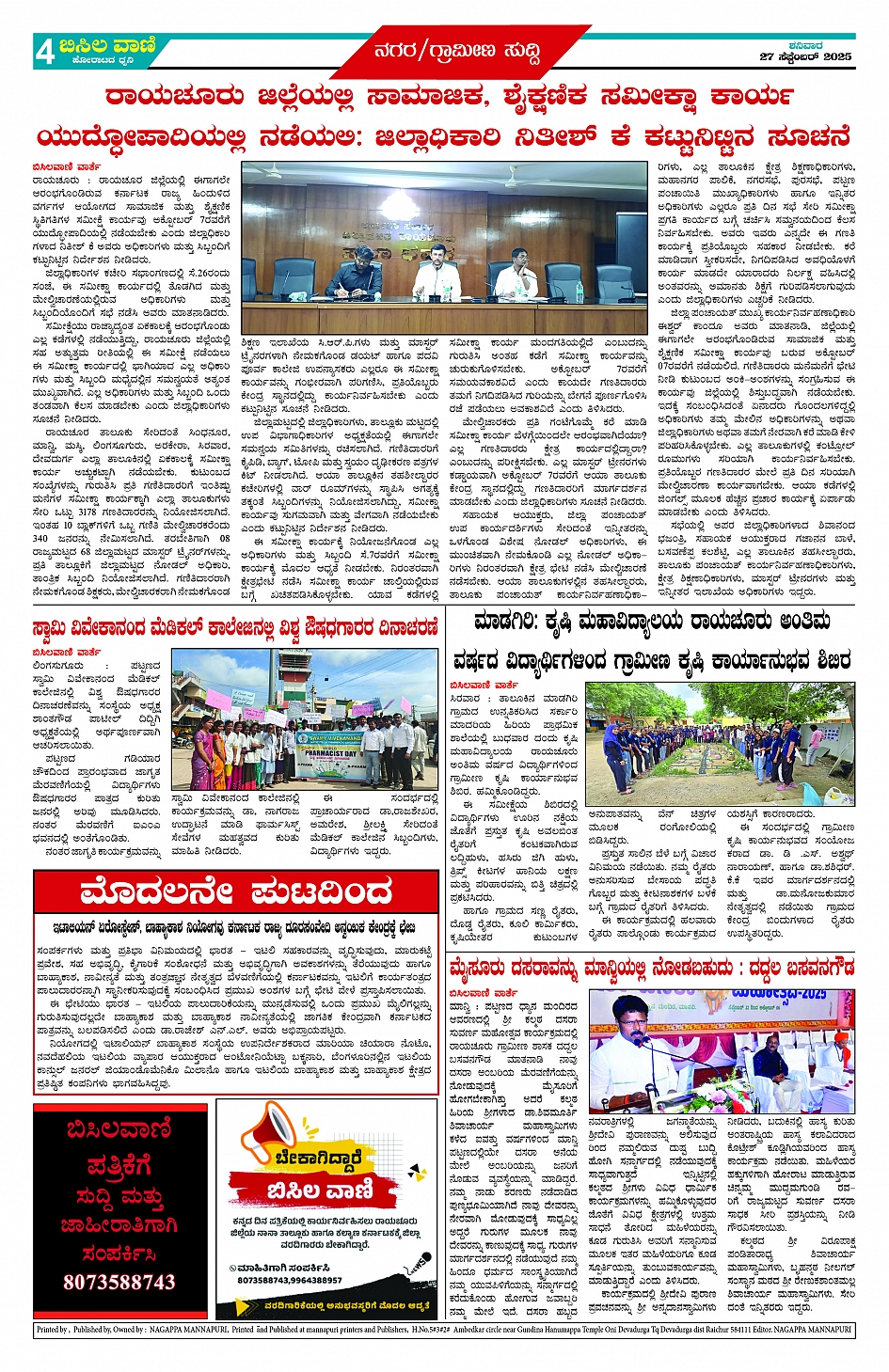27 September 2025 ಬಿಸಿಲವಾಣಿ Page: 4 September 27, 2025 << First << 4 >> Last >> Page 1Page 2Page 3Page 4 × 27 September 2025 ಬಿಸಿಲವಾಣಿ BISILAVANI 270925BISILAVANI 2709252BISILAVANI 2709253BISILAVANI 2709254 << First << 4 >> Last >> BISILAVANI 270925BISILAVANI 2709252BISILAVANI 2709253BISILAVANI 2709254 BISILAVANI 2709254
